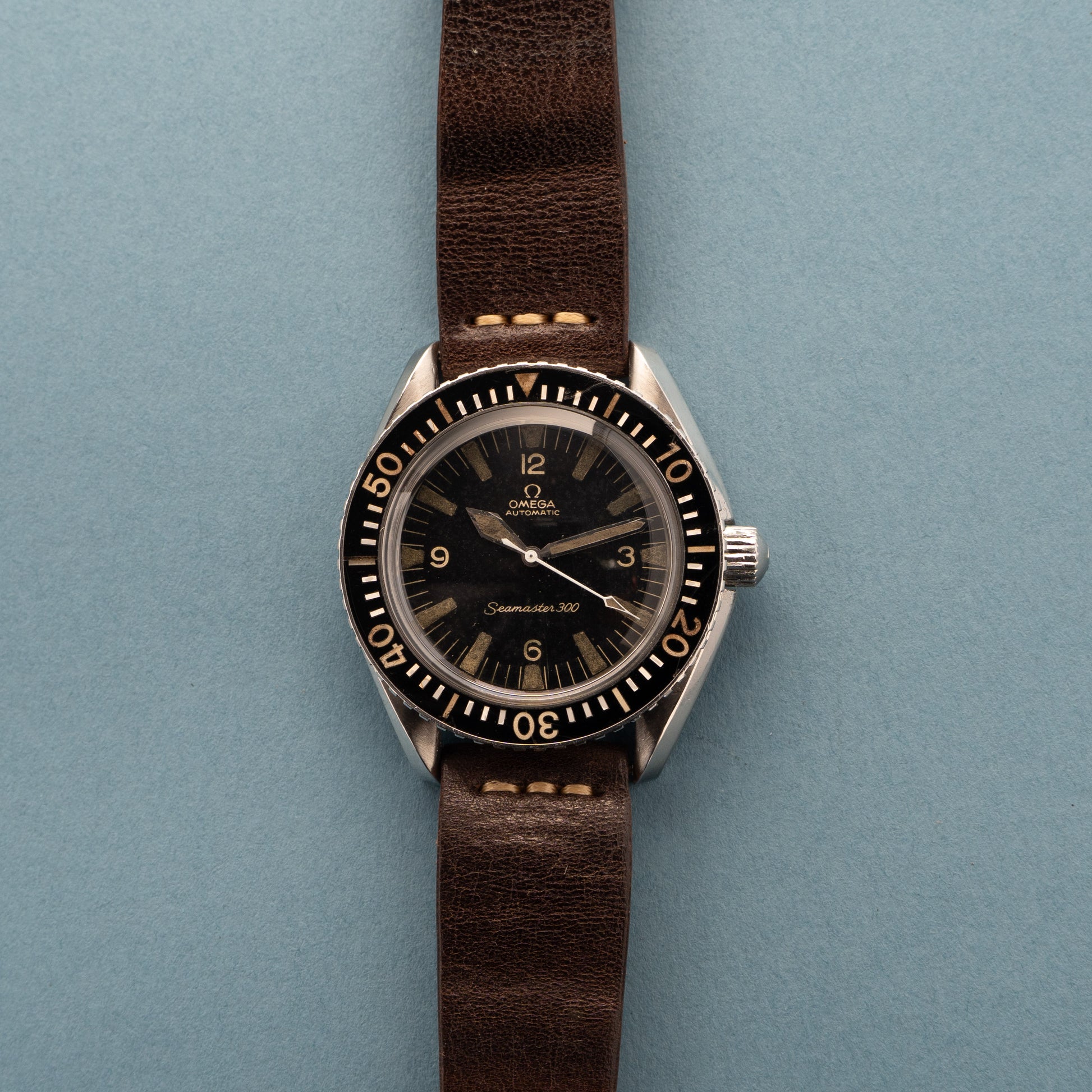 Dial: Beautiful patina on the dial, black color with a tritium indexes and Big triangle at twelve o clock. Stainless steel "Alpha" tritium hands and centre seconds.