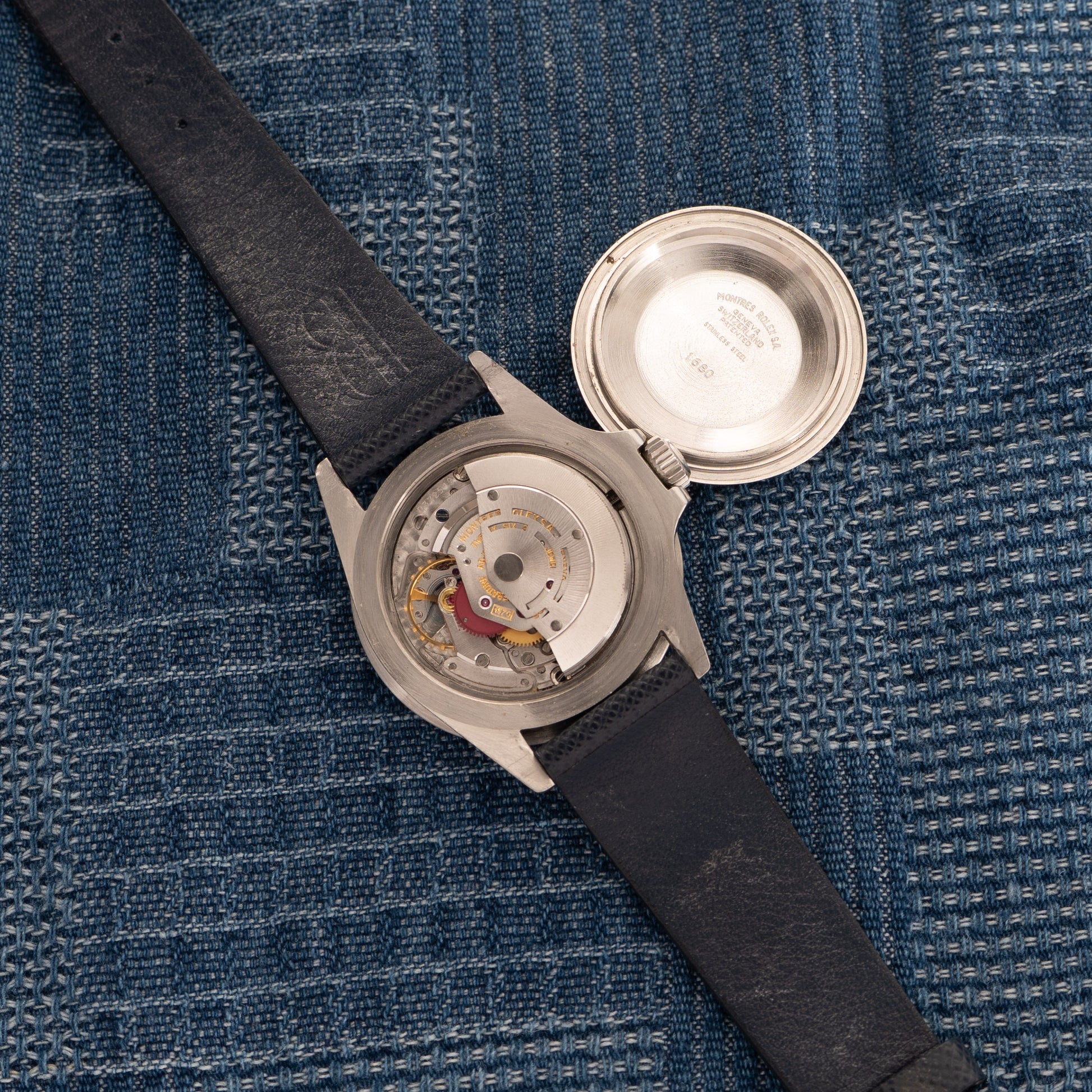 Dial: Black matte dial with white tritium indexes and "Mercedes" stainless steel hands, date window and 3'o clock position, red graphics "submariner" center sweeping seconds.